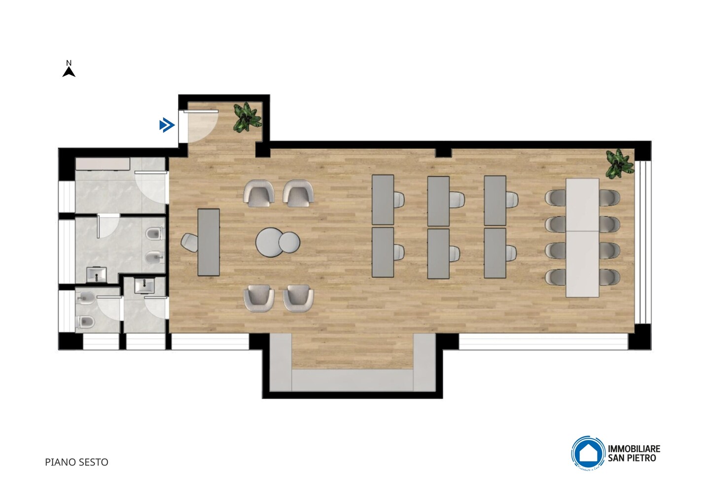 Ufficio moderno di 100 m² commerciali disposto come unico open space, facilmente divisibile, offre un ambiente di lavoro luminoso e versatile, ideale per studi professionali e uffici amministrativi. Le vetrate panoramiche garantiscono una vista mozzafiato e una luminosità naturale che stimola la creatività.