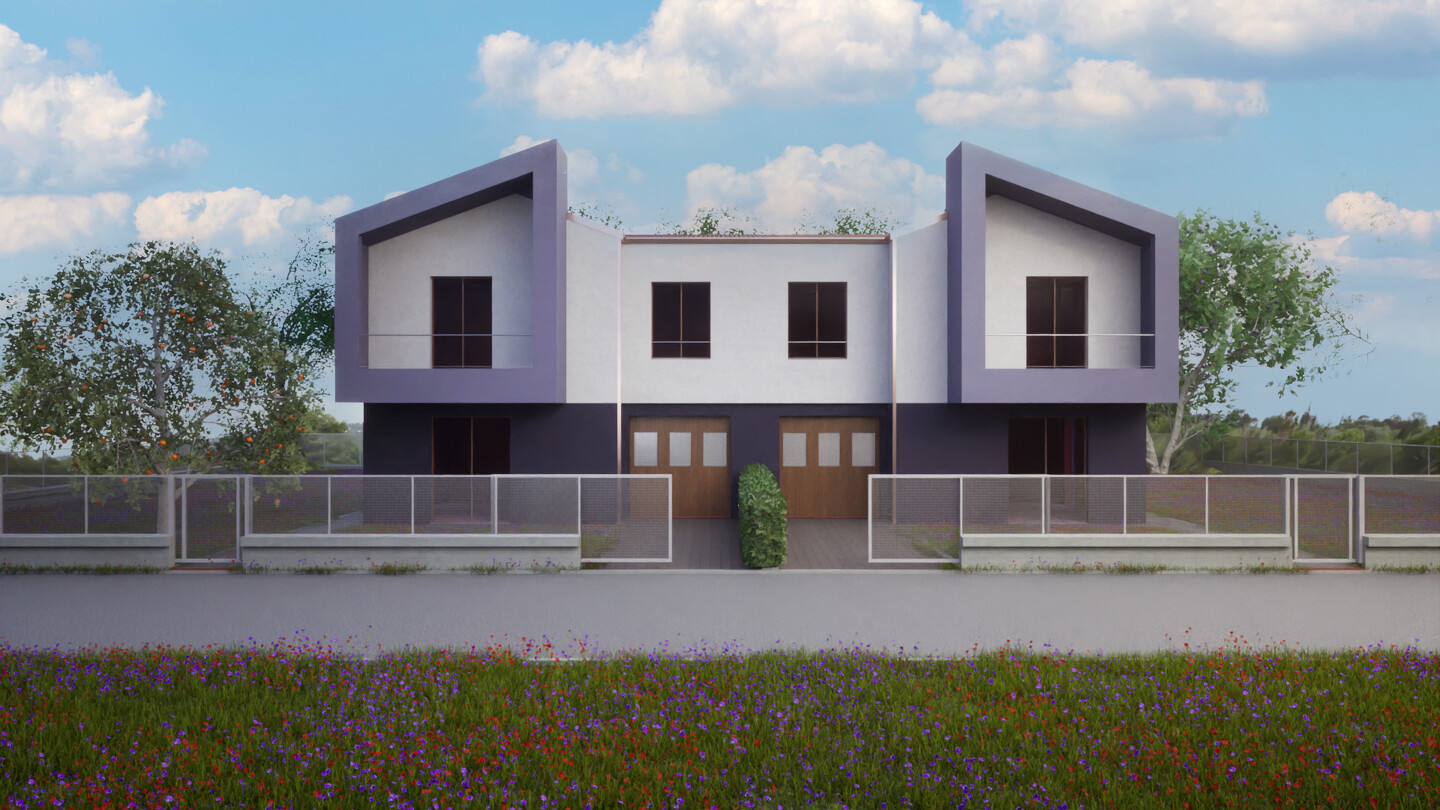 porzione di villetta in bifamiliare, con giardino privato su 3 lati. Ingresso su pranzo-soggiorno, cucina abitabile, bagno e garage al piano terra. 3 camere da letto di cui 2 matrimoniali ed 1 doppia, secondo bagno e balcone al piano primo.