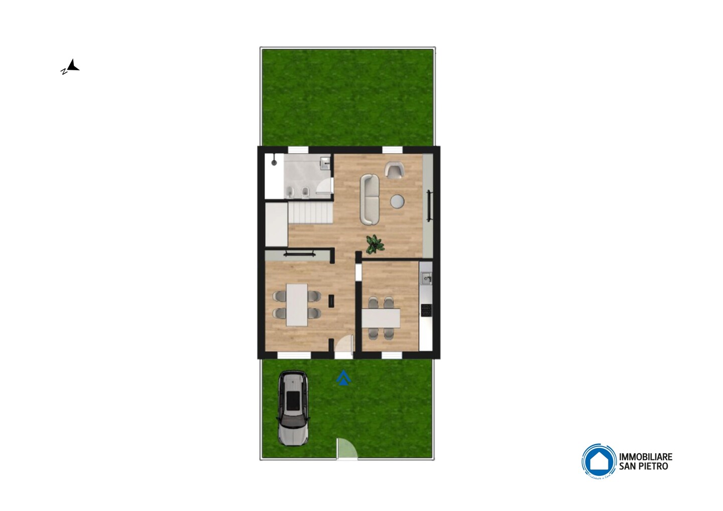Ci troviamo in una zona residenziale a ridosso del centro, caratterizzata per lo più da abitazioni indipendenti o semi indipendenti. La piazza del paese dista poche centinaia di metri ed è facilmente raggiungibile a piedi o in bicicletta grazie alla pista ciclabile adiacente all’abitazione.