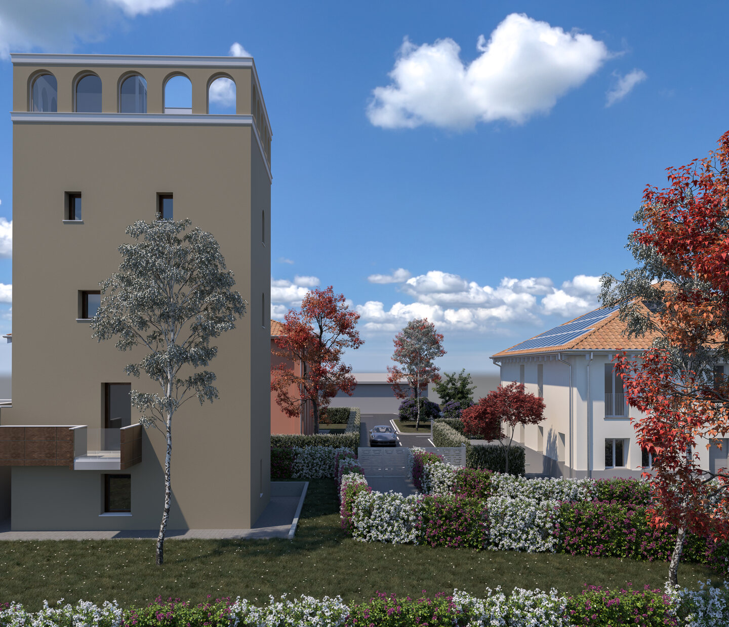 Contesto esclusivo ed immerso nel verde, ai piedi del colle di Casaglia con vista sulla Basilica di San Luca. Ideale per chi è alla ricerca di spazi verdi e privacy senza rinunciare alla comodità dei servizi.